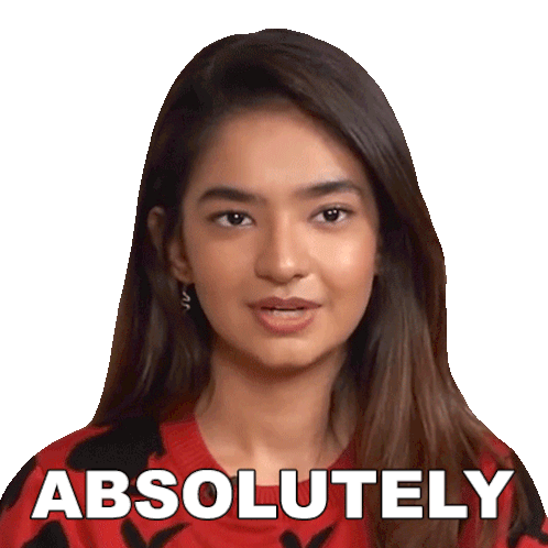 Anushka Sen, an Indian actress, confidently says "Absolutely" with a slight smile, expressing agreement.