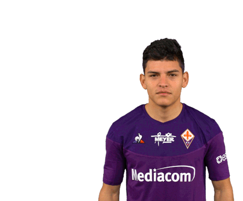 ACF Fiorentina player Kevin Agudelo reacts with intense frustration, holding his head in disbelief during a match.