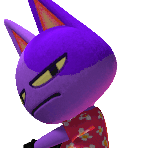 Bob, the purple cat from Animal Crossing, holds a minigun and changes expressions in this animated sticker.