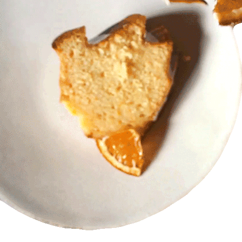 A hand carefully places baked orange slices onto a delicious orange olive oil cake, adding the perfect finishing touch from Two Plaid Aprons.