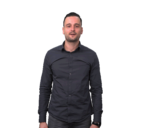 Sander Adriaanse from Addmark points down, indicating something below him with a smile.