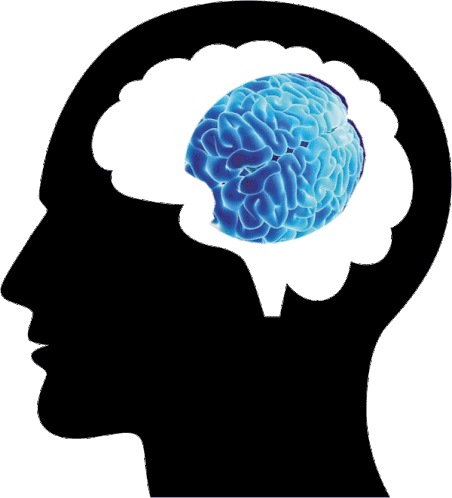 An animated sticker featuring a black human head silhouette with a glowing, blue ADHD brain pulsating inside.