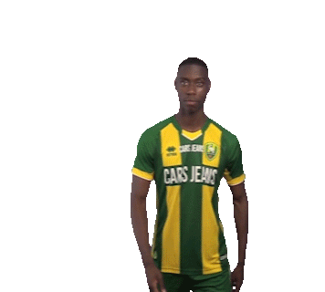 Dehninio Muringen, wearing an ADO Den Haag jersey, performs a facepalm gesture, expressing frustration or embarrassment.