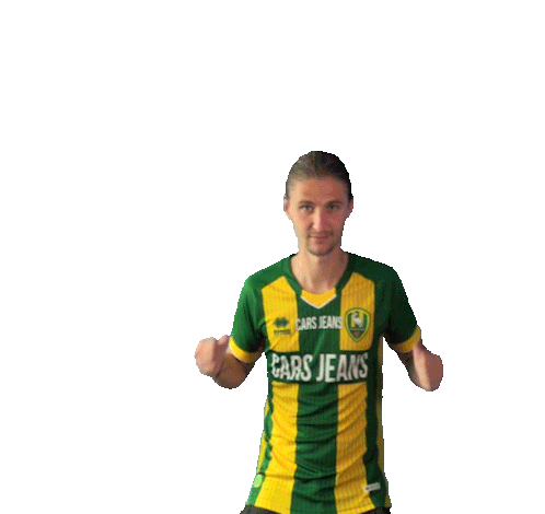 Pawel Cibicki, wearing the green and yellow ADO Den Haag football jersey, celebrates with clenched fists.