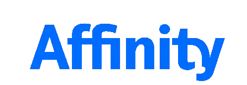 An animated sticker featuring abstract light blue shapes forming and dissolving, representing the Affinity brand.