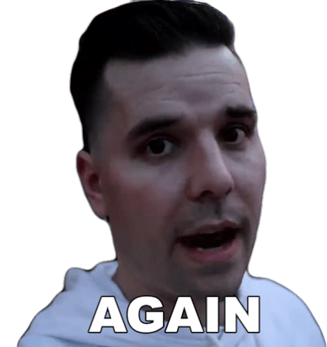 Dave Crosby reacts with 'Again' in this expressive sticker, perfect for repeated situations.