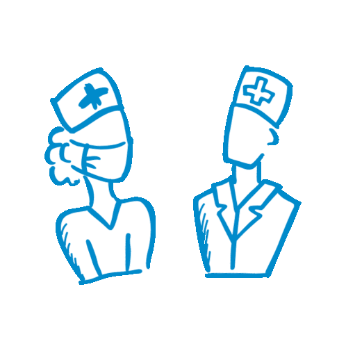 An animated sticker featuring a nurse and a doctor from the Agaplesion team, depicted in a blue line art style.