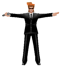 Agent J from Elite Beat Agents, a pixelated man in a suit, is shown lying down, holding an object.