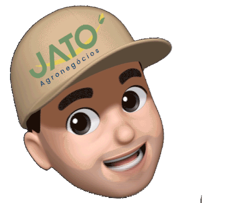An animated character wearing a JATO Agronegócios cap gives a thumbs up and winks, showing approval and positivity.