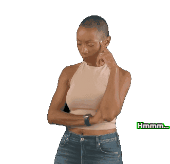 A woman transitions from deep thought to a sudden realization, exclaiming 'AHA!' as she gets a brilliant idea.