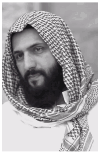 a black and white photo of a man with a beard wearing a scarf around his head