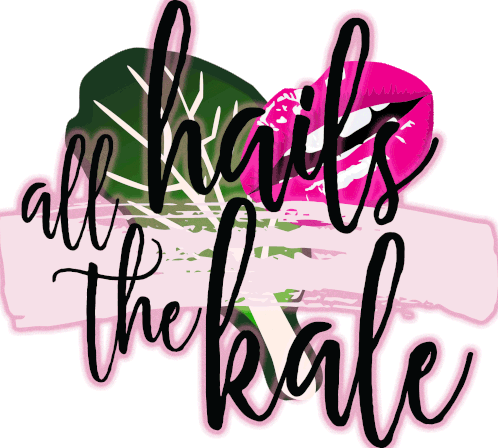 A vibrant animated sticker featuring "all hails the kale" in stylish script, celebrating healthy eating.