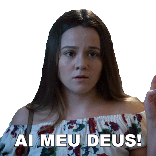Mariana Cerrone expresses exasperation with an upward gaze and the caption 'AI MEU DEUS!' (Oh My God!).