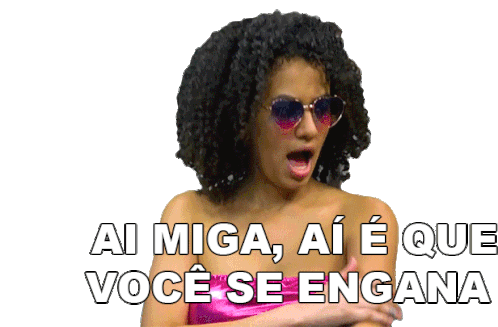 A woman with curly hair and heart sunglasses says 'Ai Miga, Aí É Que Você Se Engana', expressing skepticism or disagreement.