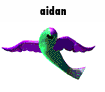 A green, winged object, possibly a flying cucumber, with the name 'aidan' above it, subtly animated.