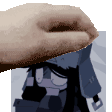 Aiden Nonfpe, a dark blue fluffy character, has a hand holding a piece of paper over their head in this animated sticker.