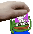 Ailaspiritbox character's hand places a card on a green frog, a Defi Kingdoms animated sticker.