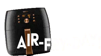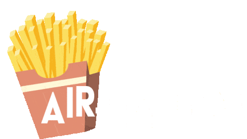 Animated sticker featuring a carton of golden french fries with 'AIR' written on it, followed by 'FRYER' appearing.