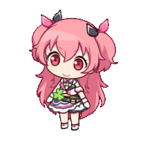a little girl with pink hair is wearing a striped dress and holding a flower .