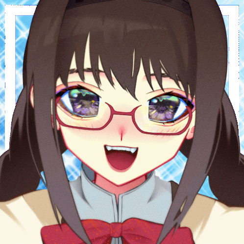 Akemi Homura in a meme-inspired expression, featuring her iconic glasses, fangs, and a wide, uncanny smile.