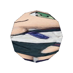 a close up of a person 's face in a circle with a white background .