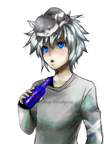 a drawing of a person with a cat on their head and a shirt that says ' noedo kreideprinz '