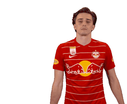 Albert Vallci, wearing his FC Red Bull Salzburg jersey, makes a 'shhh' gesture, signaling for silence.