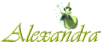 A personalized sticker featuring the name Alexandra in a decorative font, accompanied by a charming green fairy.