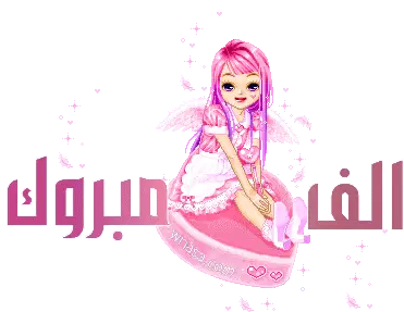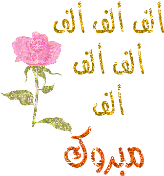 A beautiful pink rose with animating Arabic text 'الف مبروك' (Congratulations), perfect for sending well wishes.