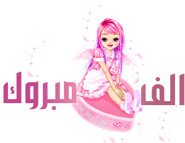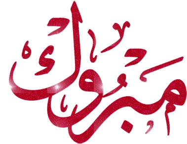 Animated sticker with the Arabic text 'الفمبروك مباركات' meaning 'Congratulations blessings', perfect for celebratory messages.