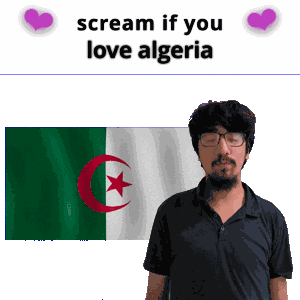 a man with glasses stands in front of an algeria flag and says scream if you love algeria
