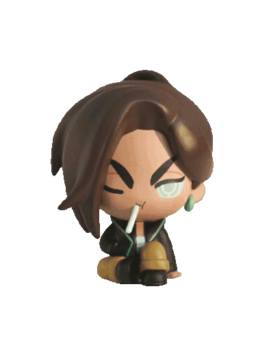 An animated sticker of the Alien Stage character Alnst (Hyuna) figurine, sitting with brown hair in a bun.