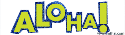 The word 'Aloha' is displayed in blue and yellow, flickering on a white background, conveying warm Hawaiian greetings.