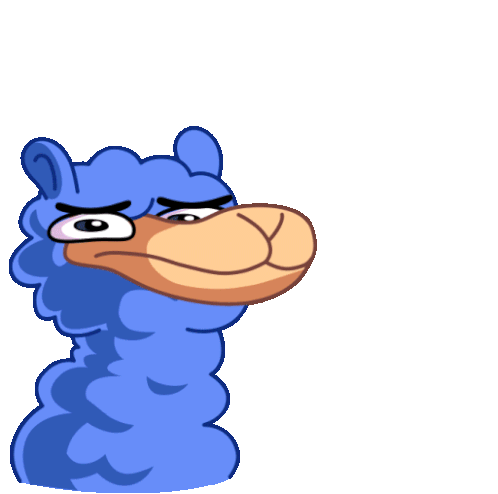 A cartoon blue alpaca with wide, bloodshot eyes opens its mouth to spit a large amount of green vomit.
