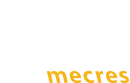 Animated text sticker featuring 'mecres' in yellow, a playful variant of 'dimecres' (Wednesday in Catalan), from Amazcat.