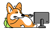 Corgi dog relaxing on a green pillow, holding a remote control, and watching a computer monitor.