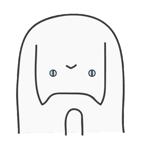 A simple, line-drawn cartoon character with a long head and small blue eyes, conveying an ambiguous or silly mood.