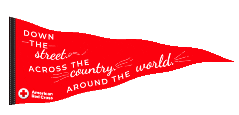 a red flag with the words down the street across the country around the world on it