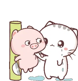 Ami Fat Cat gently holds a distressed, crying dog, seemingly trying to comfort or quiet it with a 'shhh' gesture.
