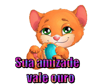 a cartoon cat with the words sua amizade vale ouro written below it