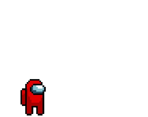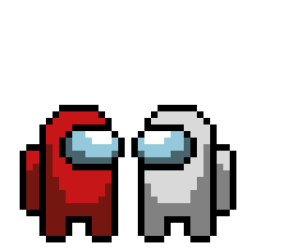 A pixel art animation of a red Among Us character performing a kill on a white crewmate, turning them into a ghost.