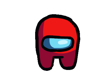 An animated sticker of a red Among Us character, rotating and walking playfully.
