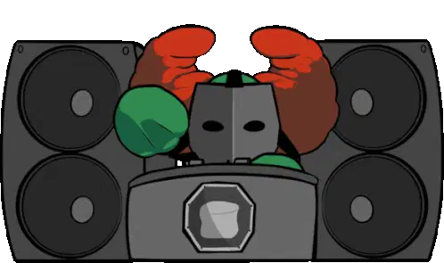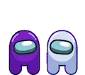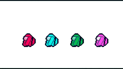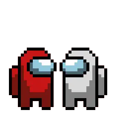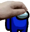 A pixel art hand holds the iconic red Among Us character, perfect for game enthusiasts.