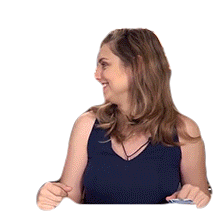 A woman in a blue top laughs heartily as unseen hands tickle her, expressing pure joy and amusement.