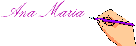 A hand with a purple pen writes the name Ana Maria in elegant cursive script on a white background.