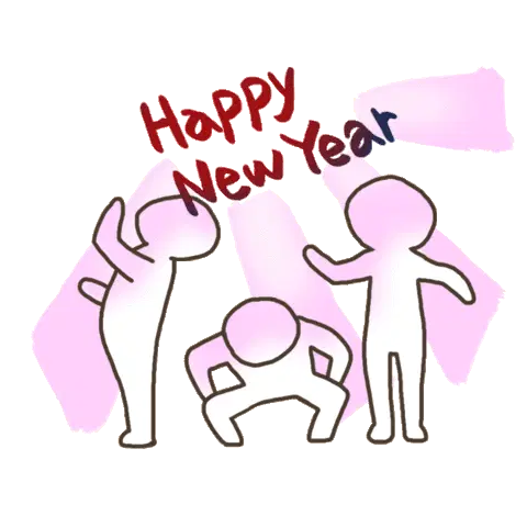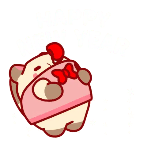 A cute baby angel with a halo and wings, holding a clover and basket, wishing 'Happy New Year'.
