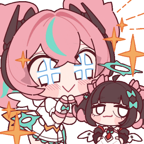 a cartoon drawing of a girl with pink hair and a black haired girl