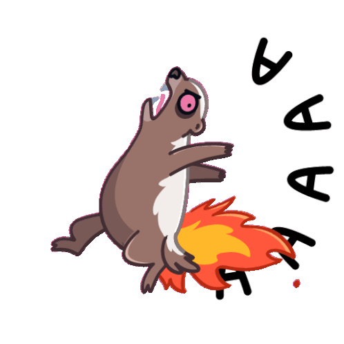 An angry honey badger screams with a flaming tail, expressing extreme frustration or panic.