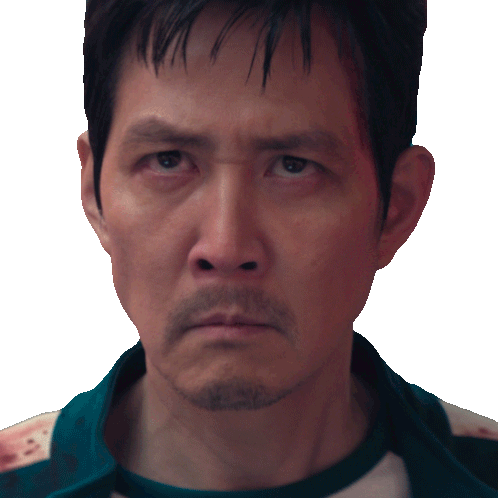 Seong Gi-hun from Squid Game, portrayed by Lee Jung-jae, displays an intense, angry, and determined expression.