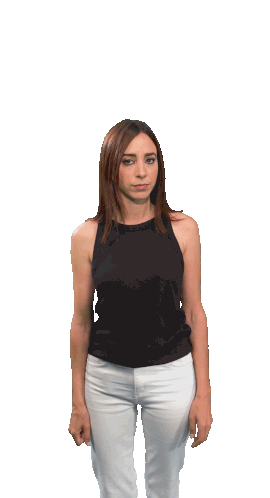 Noa García makes a disapproving "no" gesture, then stands confidently with hands on hips and a smirk.